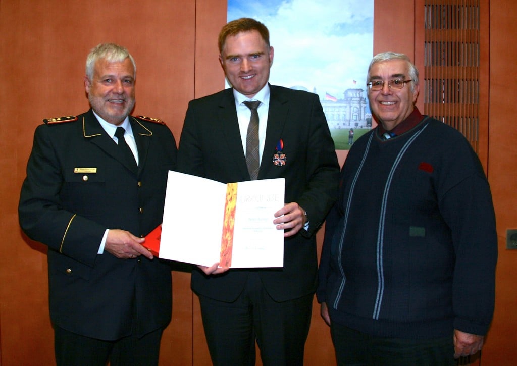 Berlin/Regensburg – Auszeichnung für Peter Aumer (CSU): Der Deutsche Feuerwehr-Verband hat dem Regensburger Bundestagsabgeordneten in dieser Woche das Feuerwehr-Ehrenkreuz in Bronze verliehen. Verbandspräsident Hans-Peter Kröger überreichte Peter Aumer das Ehrenkreuz im Rahmen eines Treffens im Bundestag, an dem auch zahlreiche Führungskräfte der Freiwilligen Feuerwehren aus der Region Regensburg, unter anderem auch der Regensburger Kreisbrandrat Waldemar Knott, teilnahmen.